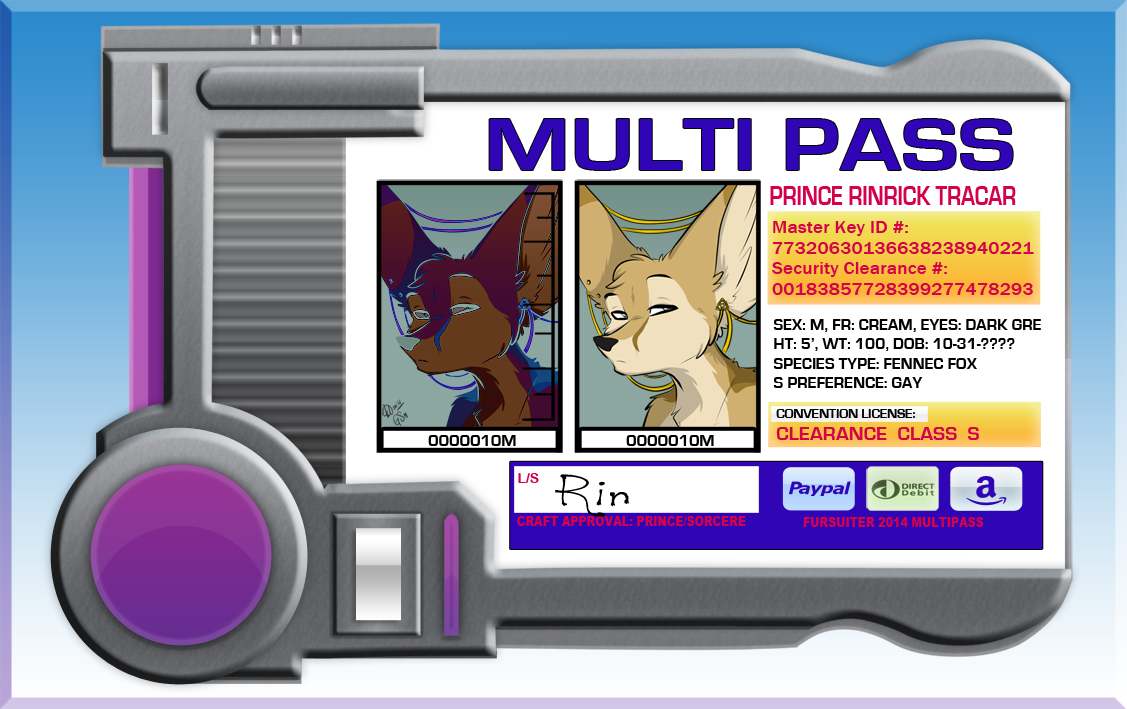 My fursona: Name: Prince Rinrick Tracar Sex: Male Age: Very old but doesn't look like it. Heigh: 5' Weight: 100lbs I am the third son of King Spen Tracar. I am from another universe; it’s a fantasy universe that is stuck in a medieval age. I am a user of high level magic; I am the strongest user in my field. I have many secrets about my past and I’ll never tell. I graduated from the Forge within 4 months of entering it; I was only 8 years of age. The Forge it a natural alliance that was formed 100,000 ,000,000 years ago in my realm by the five great kingdoms. The Forge is only meant for people who can wield the powers of the universe. I entered this realm at the height of the Roman Empire.