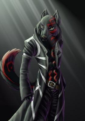 Fufsona. Name. Sevren Wroth Age 26. Height. 6'1" with an athletic build. Eyes. Yellow Fur. Black with red marking. Species. Wolf/Hellhound. Specail abilities. Pyromancy. Teleportation. Limited regeneration. Limited Telepathy.