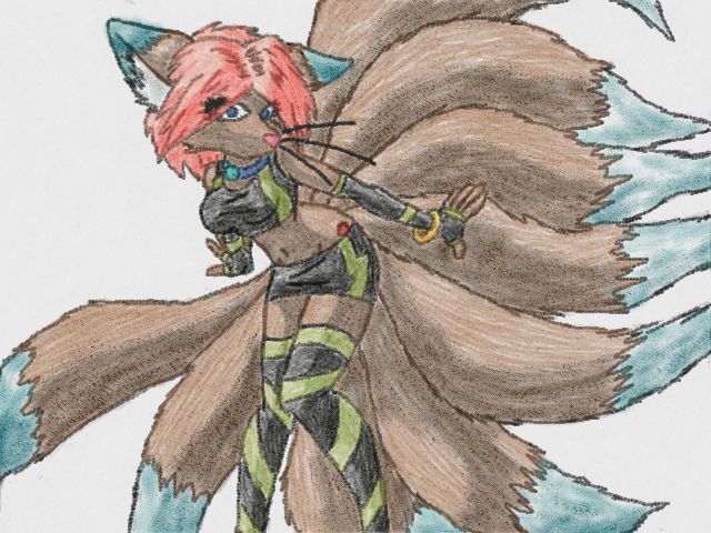 About Me: She's a young lil fennec Fox who unlike other females born with both female & male sex organs also bears the Mark of the 9 tailed Fox/kitsune on her right shoulder blade, she also has a paw mark on her left thigh that her mother, Zakuro gave her to remember her mother by, she has the word "Bitch" on her lower back right above her 9 tails, she's able to see & talk with spirits, she loves her adopted mother & wife artica sparkle's mate & she loves very much, she her young daughter, she is also a kyubi-no-kitsune, she has 9 beautiful tails, around her neck she wears a choker with a small glass ball on it, she lost her real parents when she was younger, her father was killed first infront by humans, her & her mother barely escaped, years later the humans found her & her mother named Zakuro, her mother was killed infront of her, she just barely escaped the humans, her body is covered in old scars, some even thousands of years old, proud mother of a beautiful lil daughter Zakuro & her new adopted son Mitsu
